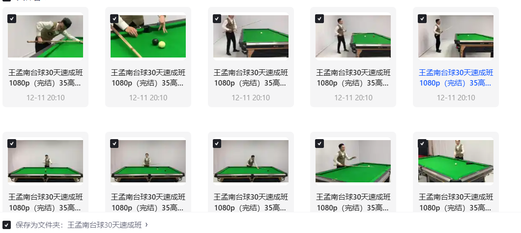 花了998买来的台球教程,正版高清视频教程 栏目:学习资料 作者:woniu313 时间:2025-11-30 15:50:05 最近很多人在找这套台球教程,资源非常的珍贵,保存到自己网盘自学或者知识变现都是非常不错的!打包链接:https://pan.quark.cn/s/5f8a4258e00a 为避免链接失效,尽快转存下载!